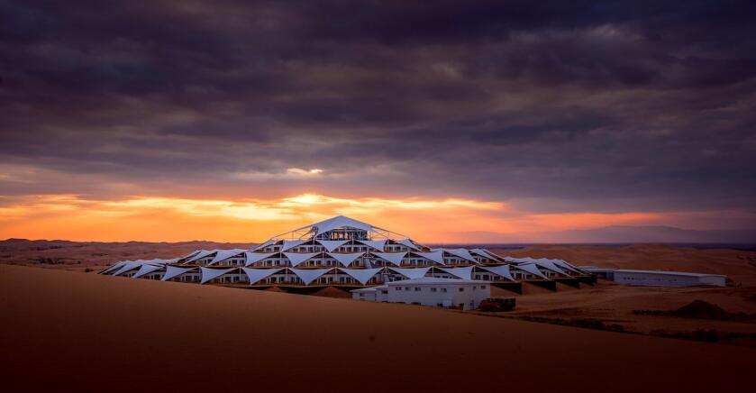張拉膜結(jié)構(gòu)打造的沙漠酒店--響沙灣蓮花酒店