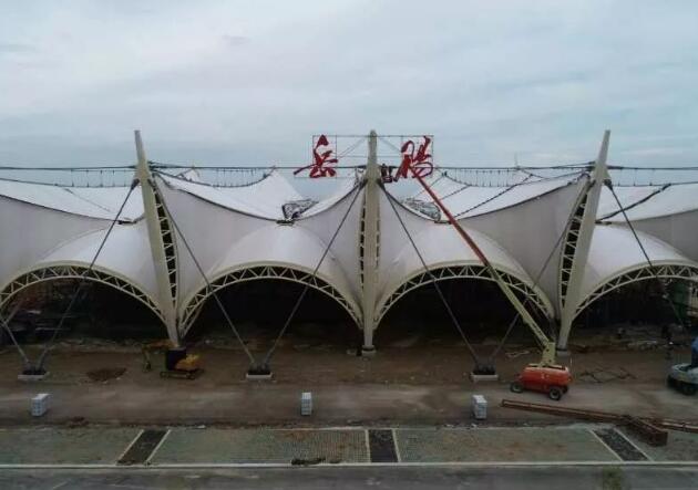 機(jī)場(chǎng)航站樓總面積近9000平米,整體采用國(guó)內(nèi)首創(chuàng)的鋼索膜結(jié)構(gòu)體系,用材和工藝都有嚴(yán)格要求,據(jù)悉,由于跨度大,重量達(dá)到45噸,然后膜結(jié)構(gòu)采用200噸的預(yù)拉張壓硬力,這種工藝精度要求高,施工難度大。鋼結(jié)構(gòu)拉索膜模擬船帆,鋼架、拉索形同桅桿,營(yíng)造出“遠(yuǎn)浦歸帆”場(chǎng)景,展示出濃郁的岳陽(yáng)地域文化特色。