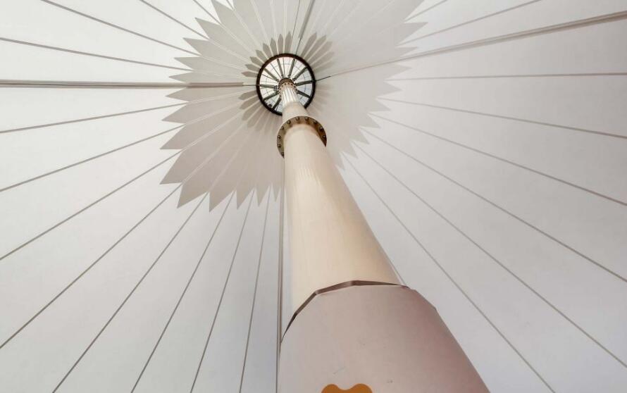 這是一個超450平米的兒童游樂場,于上方覆蓋一把膜結(jié)構(gòu)“大傘",采用白色PVC膜材,大傘中央以一根鋼管支撐,營造了一個明亮開闊無遮擋的空間。